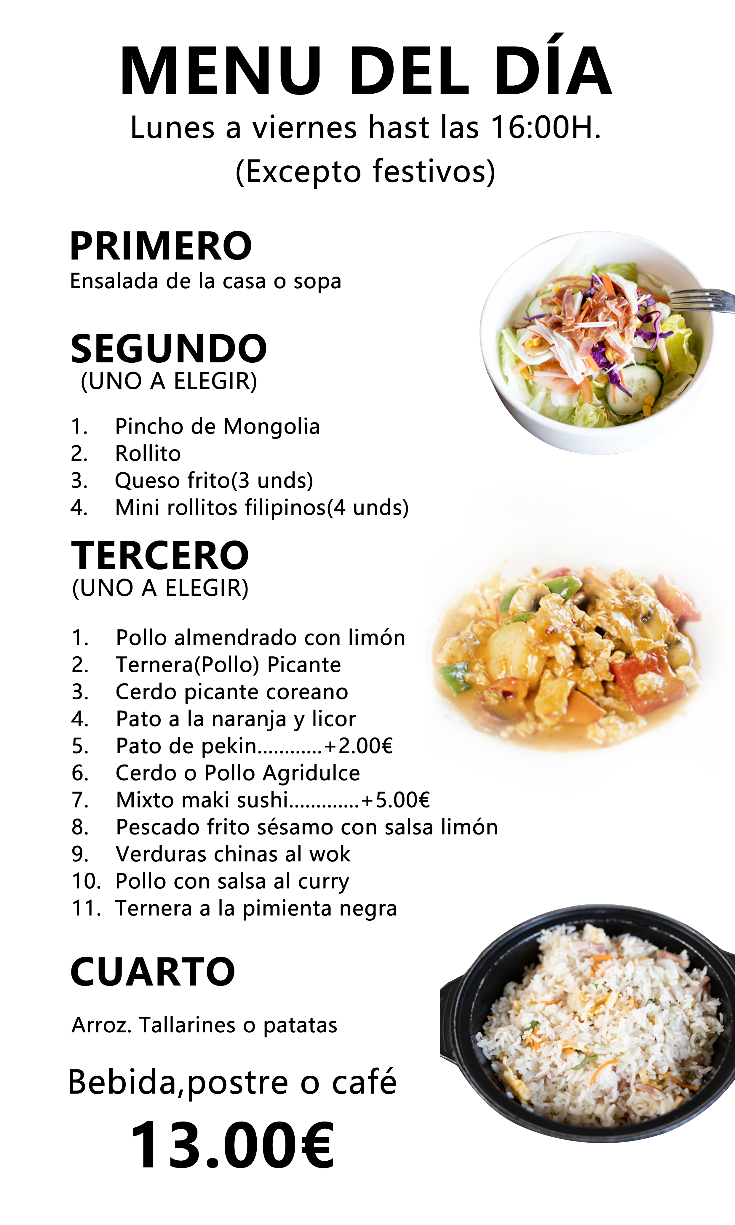 El mediodia de 24 y 31 de Diciembre no esta disponible el Menu del día